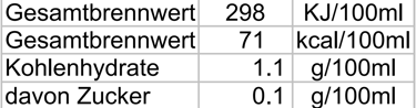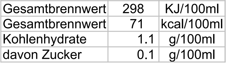 Brennwerttabelle: 100ml enthalten durchschnittlich: